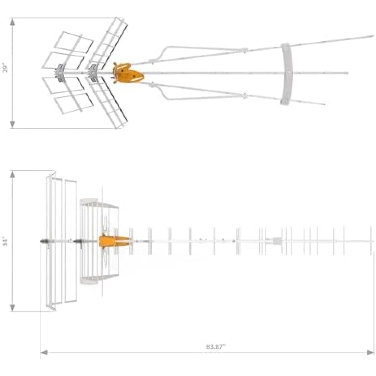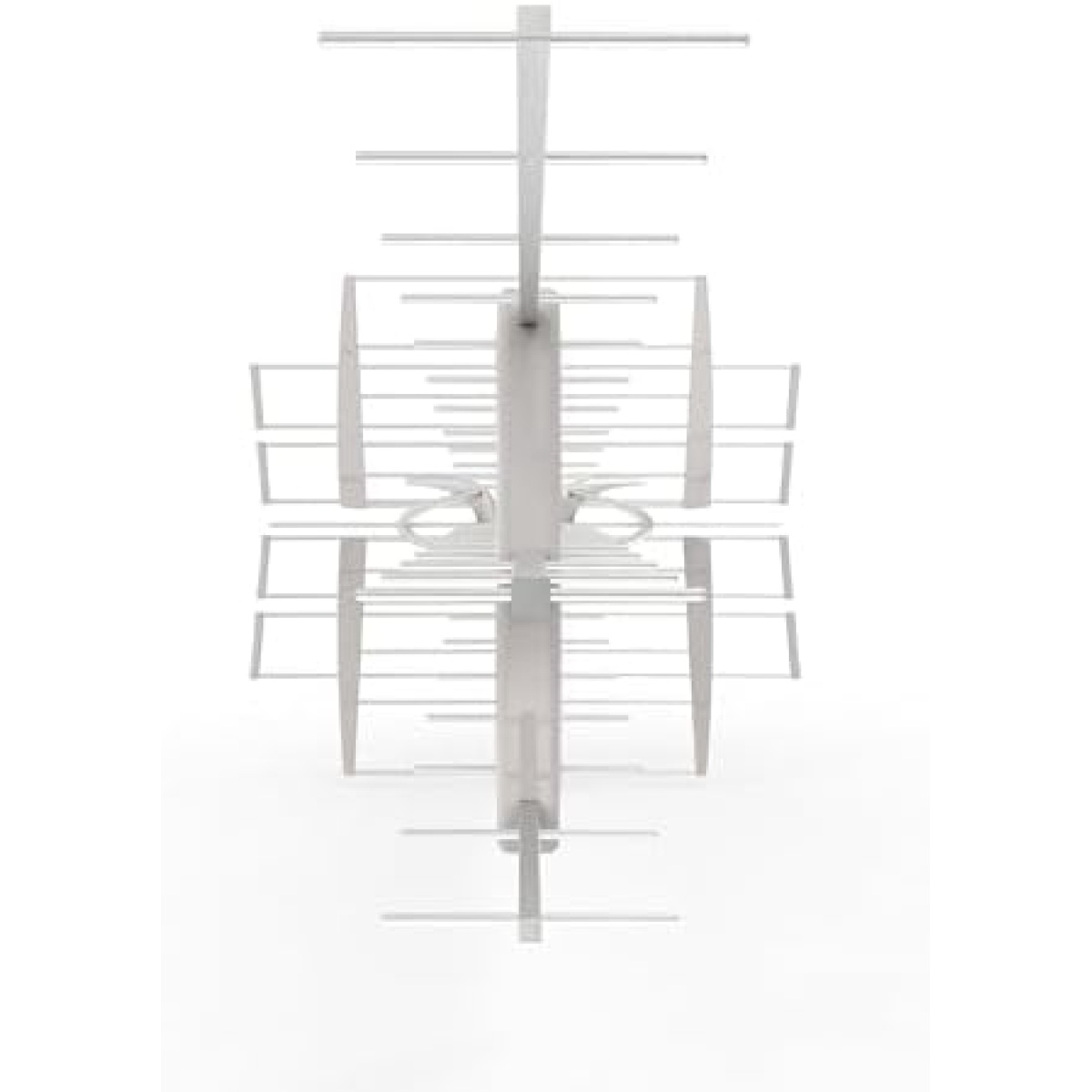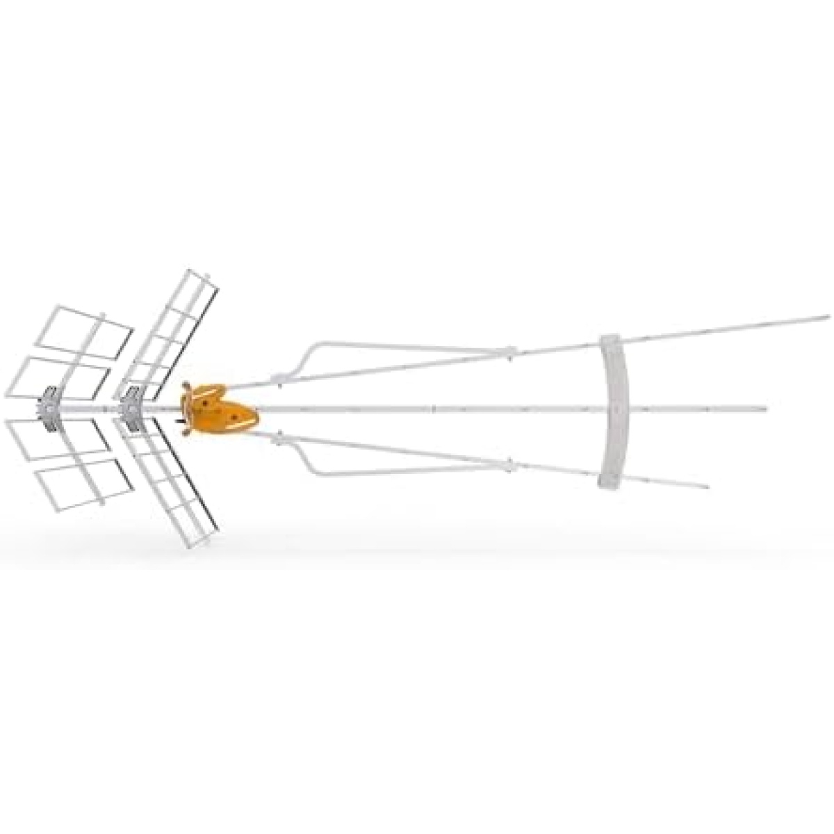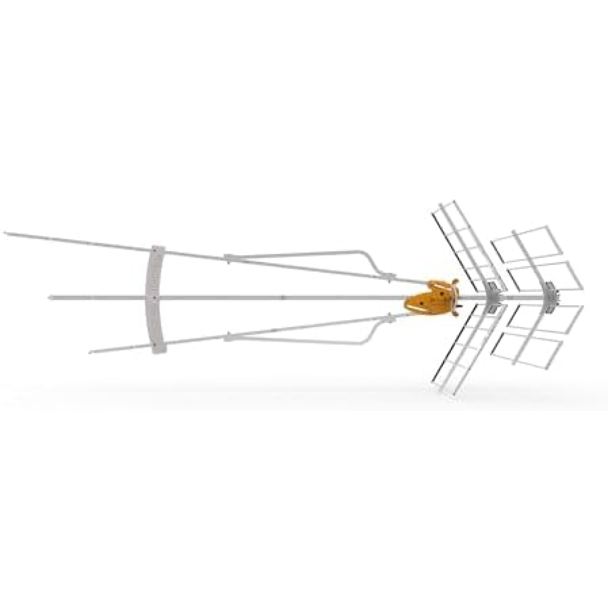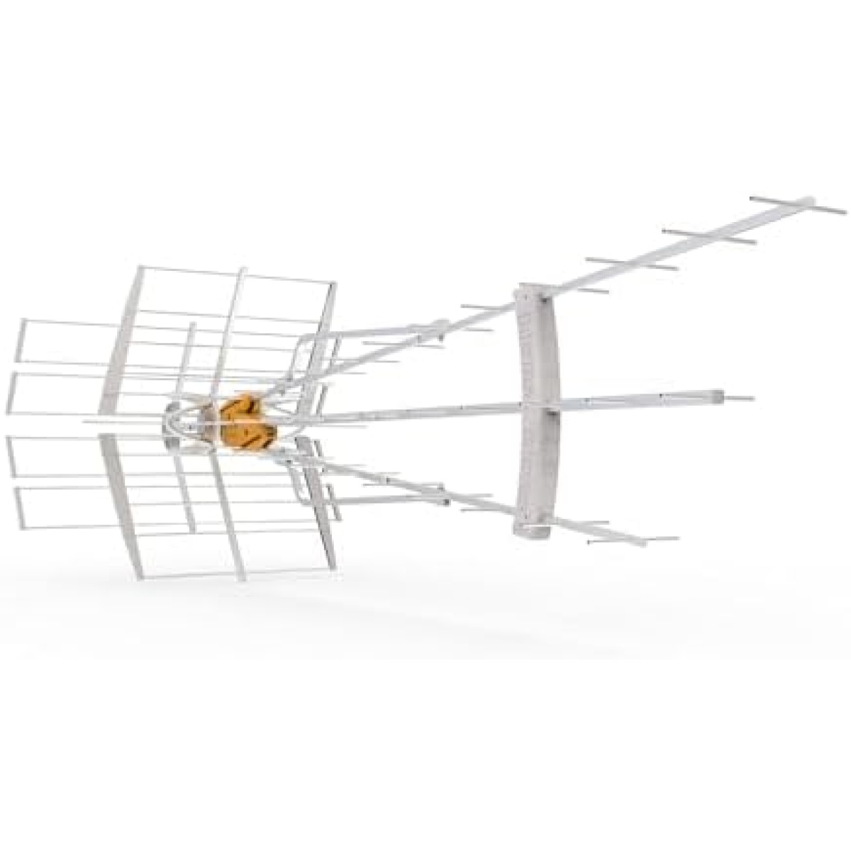 The Televes DAT BOSS LR Mix is a state-of-the-art long-range over-the-air TV antenna that automatically adapts its gain in real time to optimize the reception of television signals, ensuring the optimum level of signal is delivered at all times. The antenna has been designed from the ground up for US broadcast frequencies, significantly improving gain and range over previous generations, filtering any interfering 5G signals above 608 MHz, and providing independent amplification for the VHF and UHF bands. The DAT BOSS LR Mix is able to receive very weak distant signals while at the same time avoiding overload caused by very strong signals. This is a very high-gain directional antenna designed to offer stable and high quality reception of UHF and high VHF signals only (RF channels 7-36) in challenging long-range and fringe receiving scenarios despite continuous changes in weather and transmitting conditions thanks to its exclusive and intelligent built-in TForce amplifier. The stacked triple boom design ensures market leading raw gain while still maintaining a compact and install friendly form factor. The DAT BOSS LR Mix includes the tools needed for assembly. No additional preamplifier purchase is required as the antenna includes a best-in-class very low-noise TForce preamplifier built in right at the dipole with automatic gain control, plus FM and cellphone signal filtering adapting to any installation situation. A low-consumption UL-listed power supply is included providing 2 outputs for convenient distribution to additional TV sets.