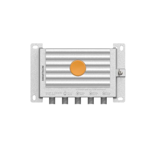 SmartKom 531983 is a high tech alternative to antenna rotors. Combine up to 3 TV antennas with automatic one button self-programming and filtering. Manual programming is also available via Bluetooth iOS/Android app if fine tuning is desired. No moving parts. Durable static installation. Built-in preamp with AGC (automatic gain control). Allows you to program multiple markets (transmitter locations) without re-aiming your antennas. Similar to the Avant X in a mast mounted affordable package. The individual filters have 60dB dynamic range to adjust all carriers to the same power, then the output is adjusted at 25dBmV fixed, maintained by AGC. Enough power to feed an entire house or small building. SmartKom is a rotor alternative that allows to seamlessly combine up to 3 antennas pointing at different directions/markets. SmartKom avoids the losses caused by combining antennas directly with splitters or combiners which translate in severe signal loss, co-channel, multipath, and phasing interference issues.