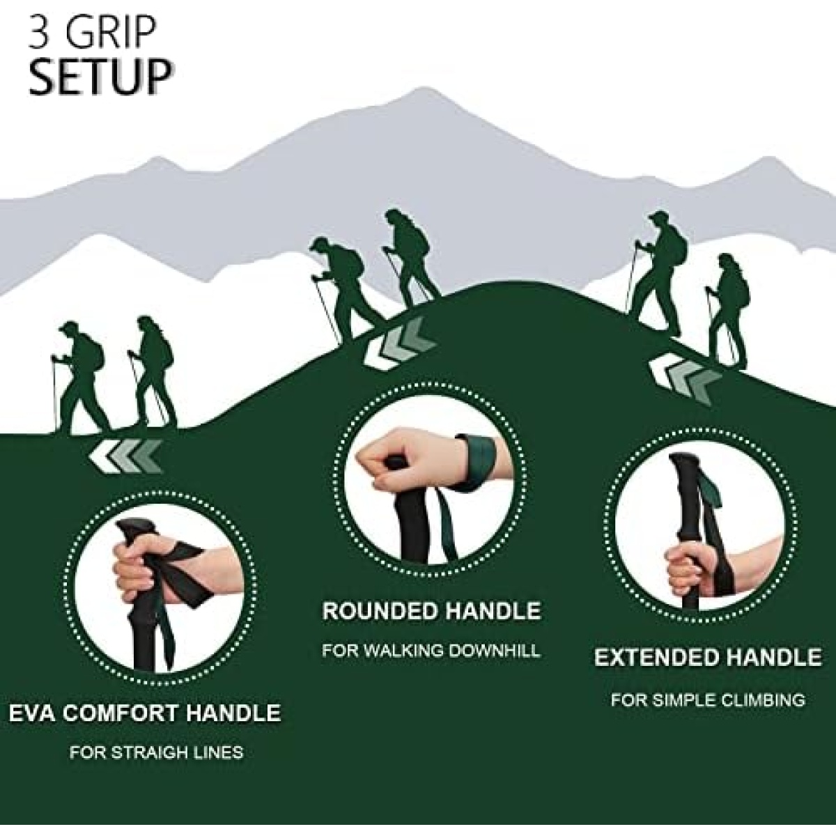 Details Matter in Success: Extended ergonomic EVA foam handle precisely accommodates your palm, absorbs sweat, anti-slip, and keeps your hands comfortable throughout your hike. It offers you more options in switchbacks or abrupt changes in terrain. The adjustable wrist straps allow you to release your grip on the handle, which in turn reduces possible soreness to your palms.