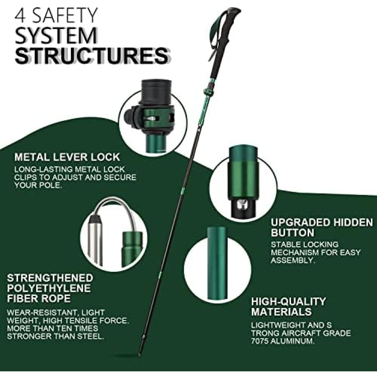 Durable & Worry-free: TheFitLife hiking poles are made of lightweight 7075 aluminum alloy which is commonly used in aviation. It withstands pressure and shock better, in addition, it helps reduce back and knee joint stress. Metal lever lock and hidden button locking mechanism make it stable and secure.