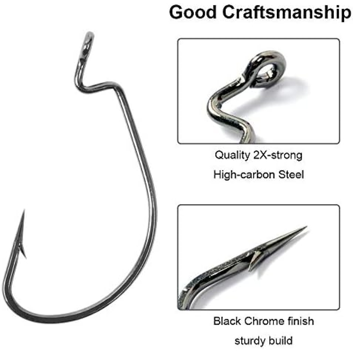 ►Good Craftsmanship — Made from the Quality 2X-strong High-carbon Steel with chemically sharpened needle points, UCEC big bass hook is built sturdy for deep penetration and durability, Black Chrome finish can effectively prevent corrosion.