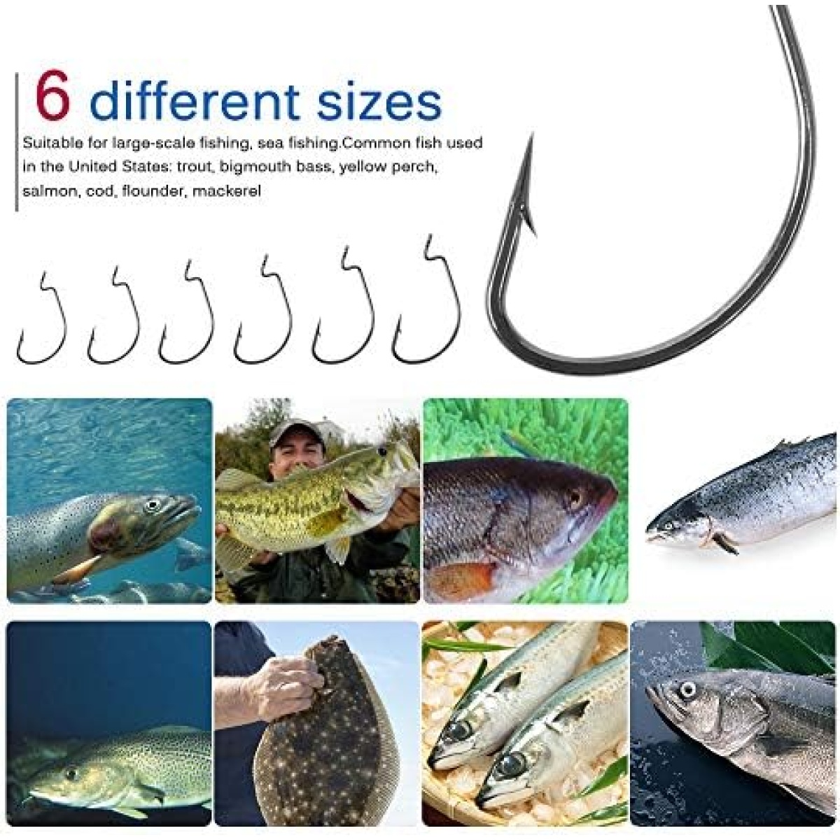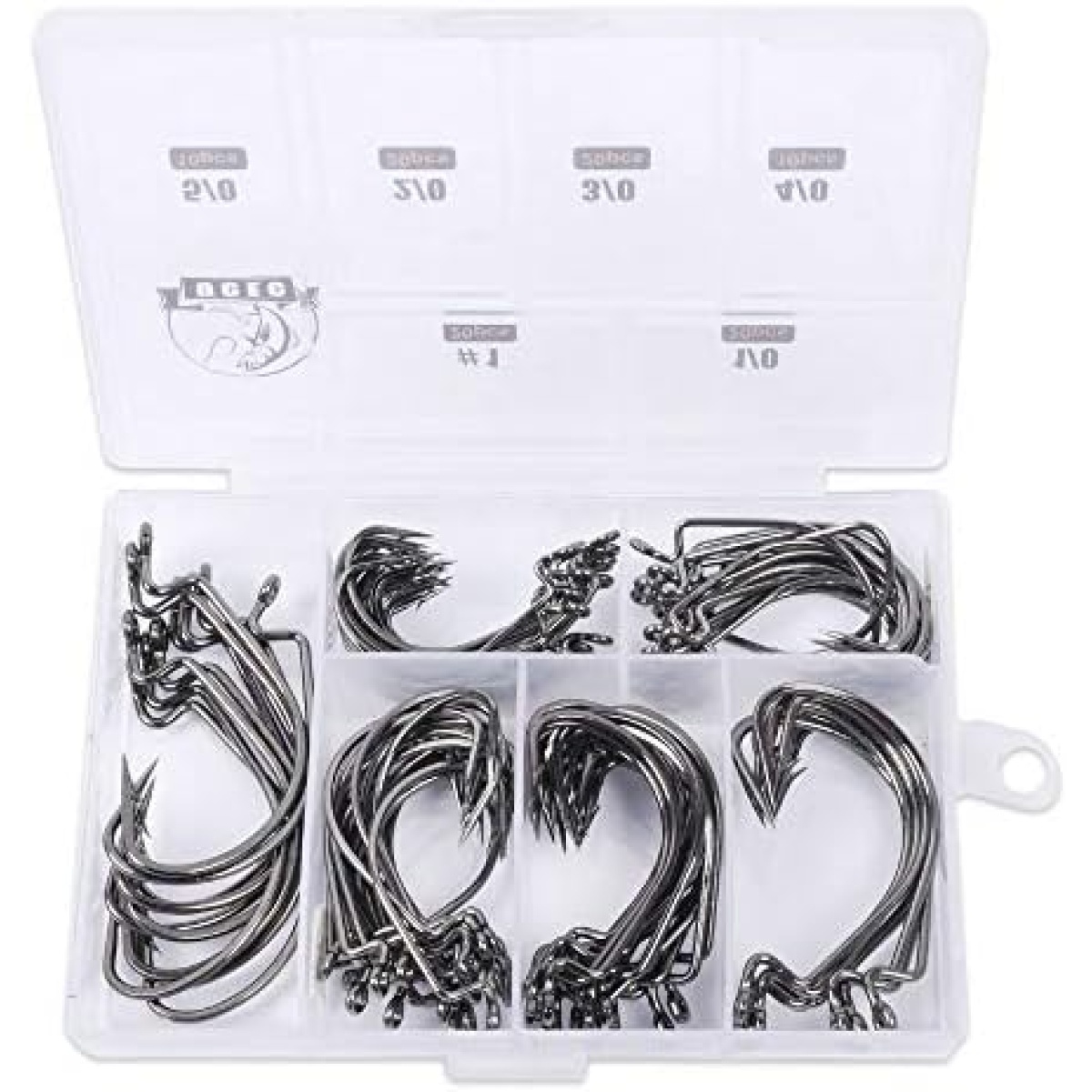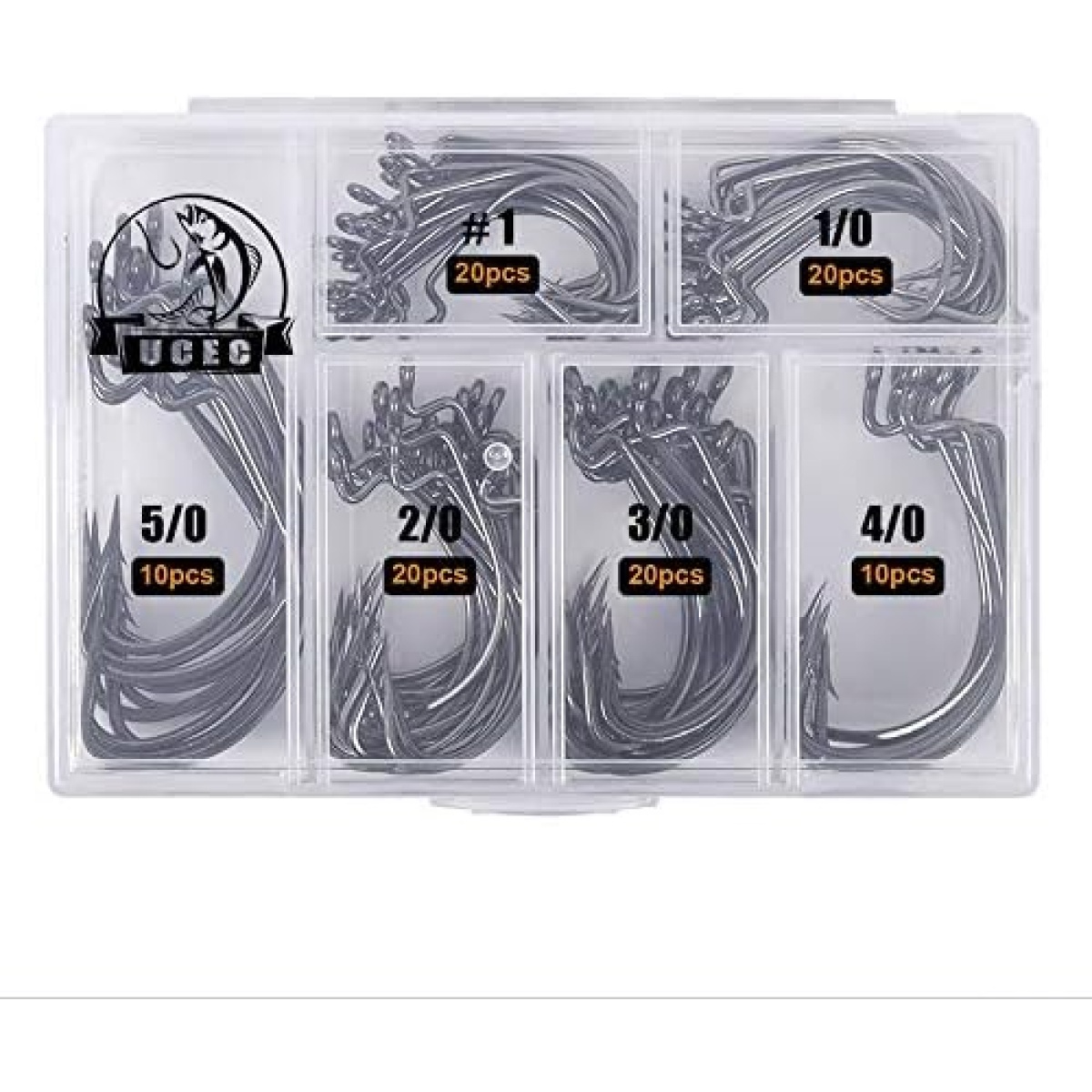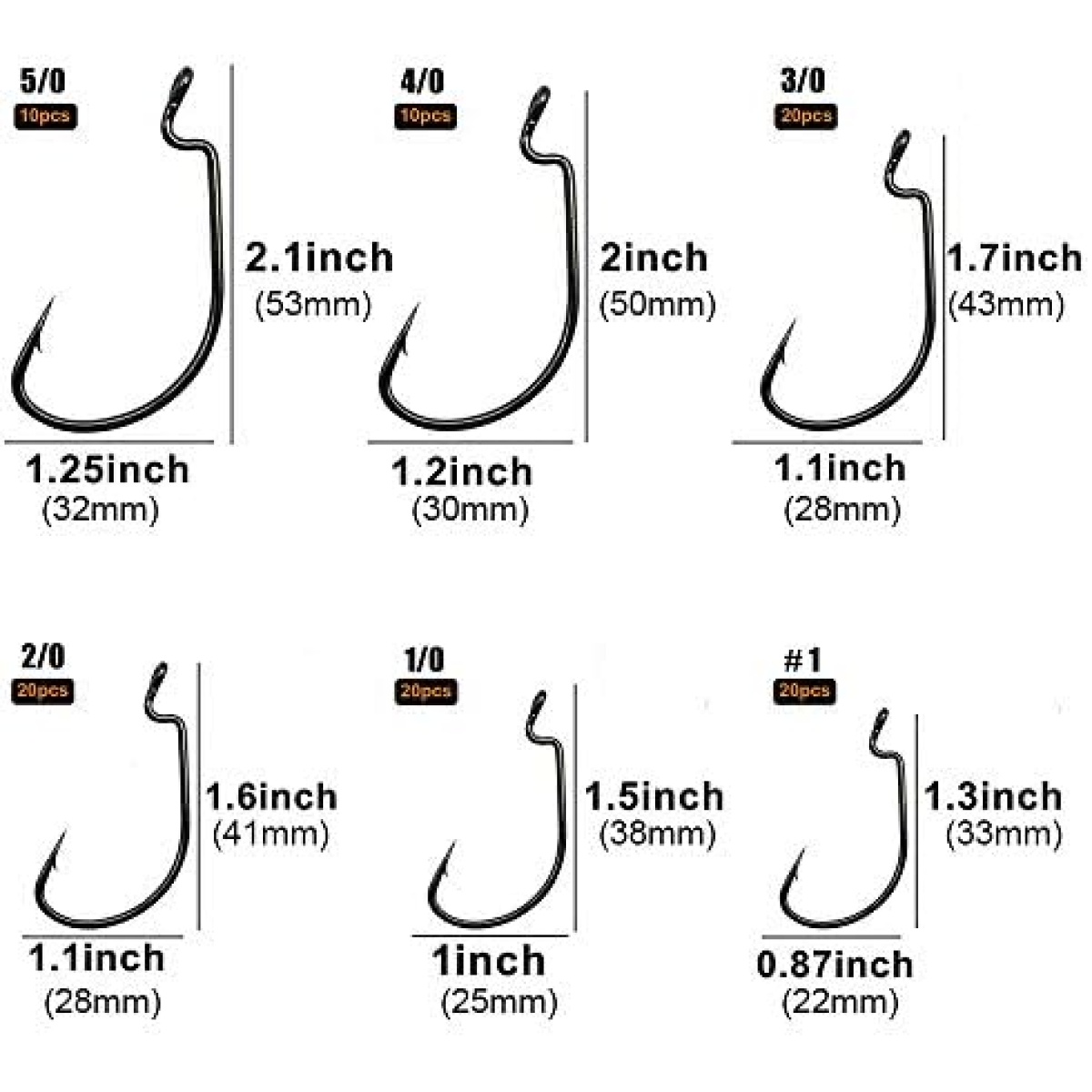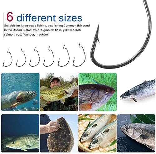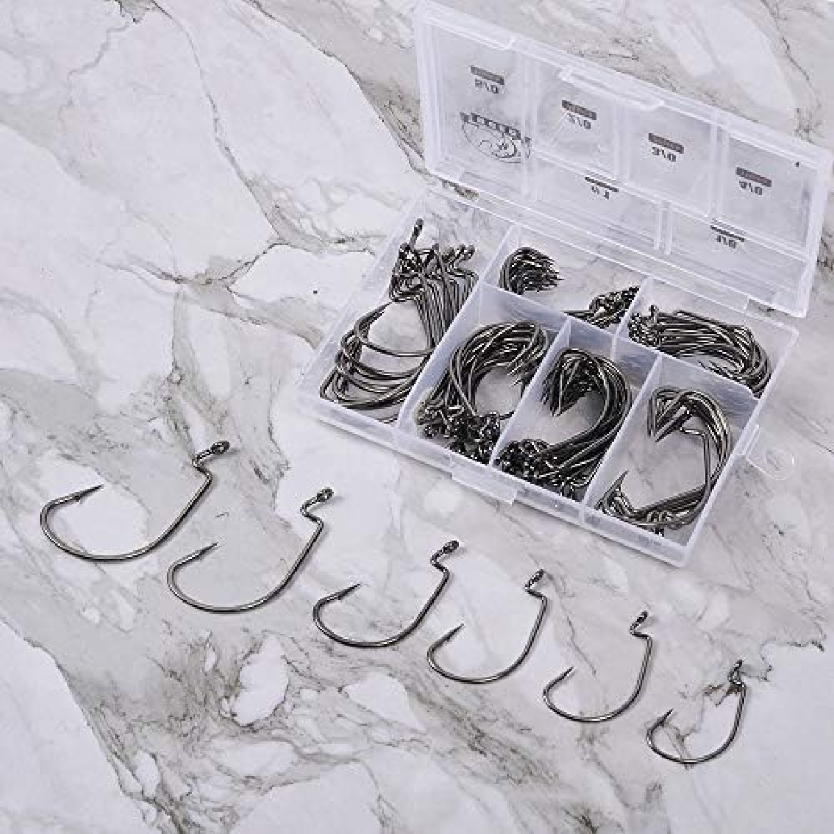 ►What you Get — 20pcs each for size #1, 1/0 2/0 3/0 and 10pcs eash for 4/0, 5/0. 100pcs/box in total. 6 different sizes are well assorted in a reusable portable plastic box.