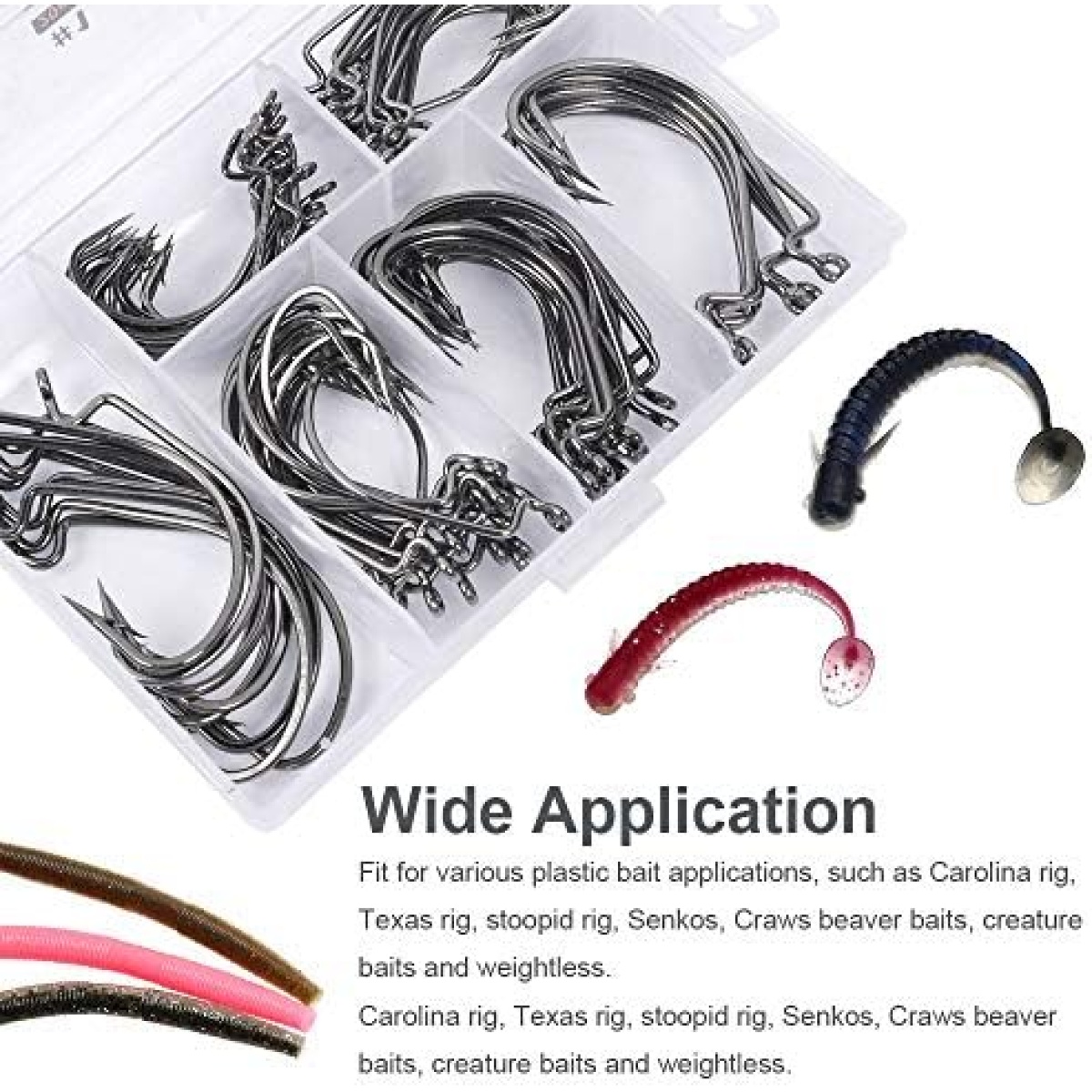 ►Wide Application — Fit for various plastic bait applications, such as Carolina rig, Texas rig, stoopid rig, Senkos, Craws beaver baits, creature baits and weightless.