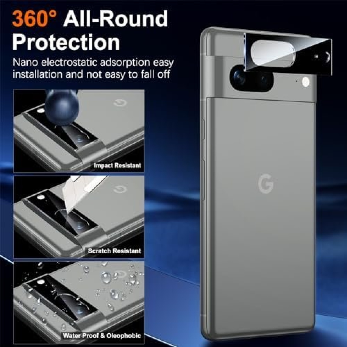 Camera Protector Double Protection: Pixel 8 Camera Lens Protector made with an electroplated sapphire super hard AF film camera protector screenNano electrostatic automatic adsorption technology, easy to install and not easy to fall off, without any bubbles or white edges.
