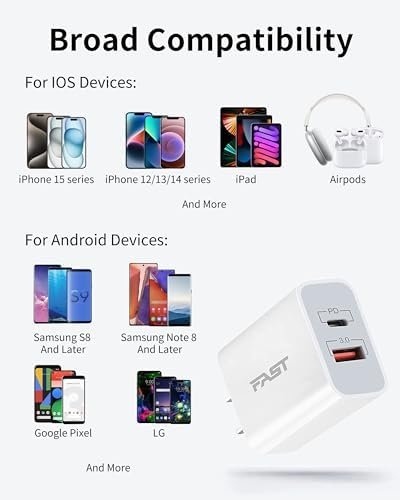 • Dual Port High-Speed Charging: USB C Wall Charger has a 20W USB-C Power Delivery port and an 18W USB-A fast charging port. Support for fast charging of most cell phone or tablet devices to minimize waiting time.