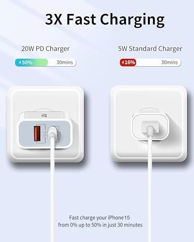 • With power delivery 3.0 fast charging technology, charge your iphone 15/14 up to 50% in just 30 minutes. 3X faster than 5W charger.
