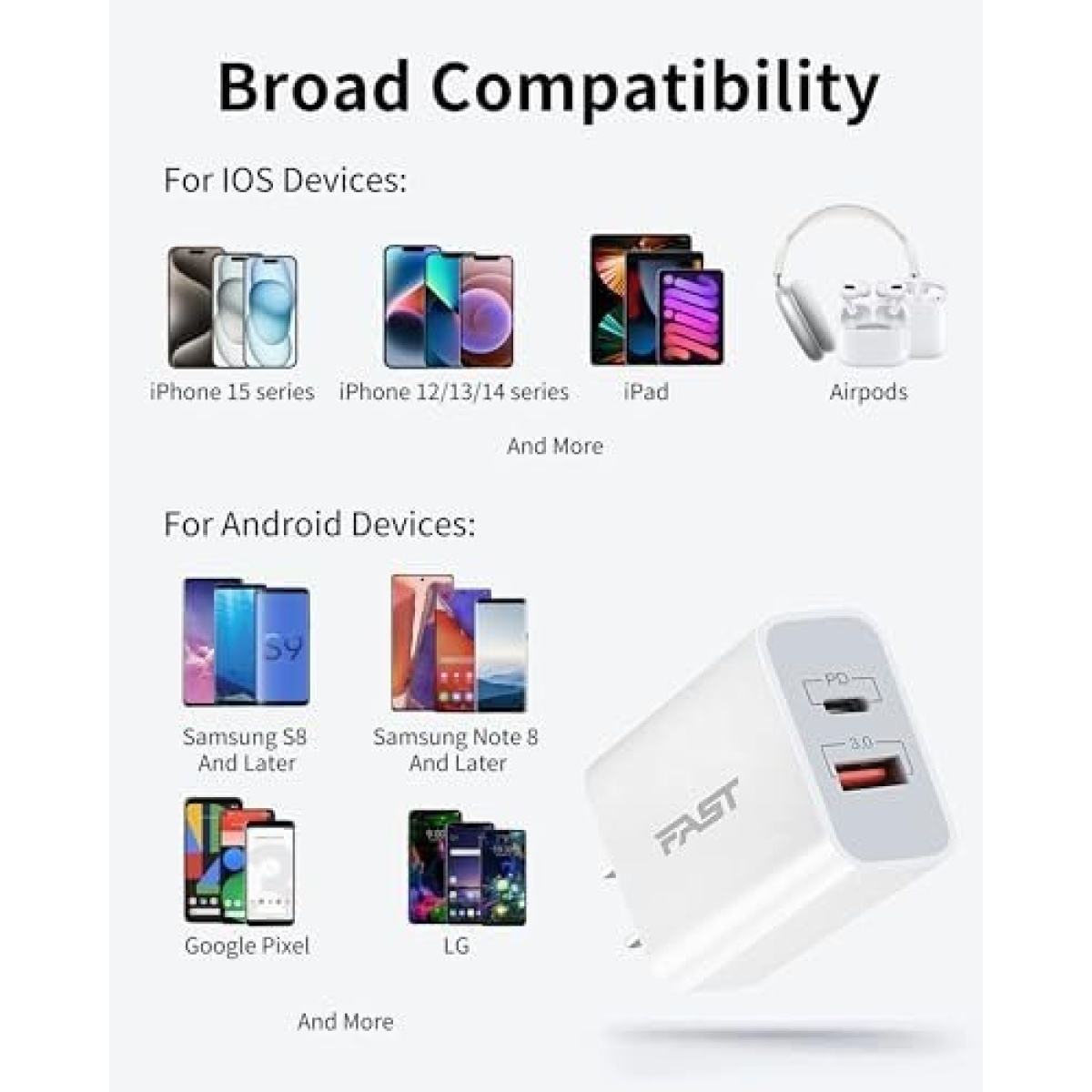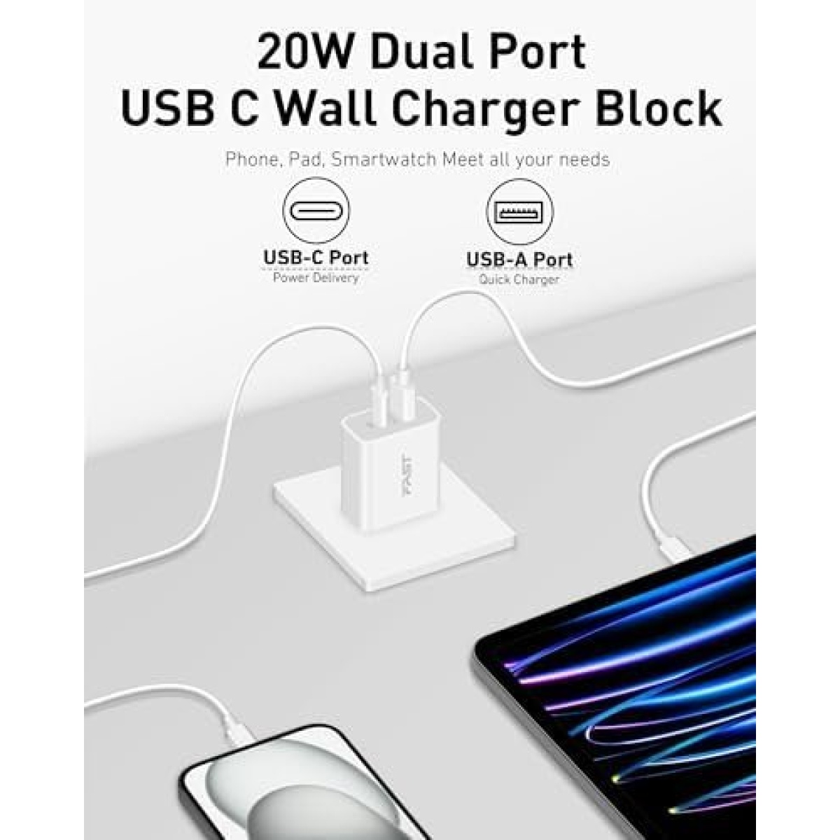 • Dual Port High-Speed Charging: USB C Wall Charger has a 20W USB-C Power Delivery port and an 18W USB-A fast charging port. Support for fast charging of most cell phone or tablet devices to minimize waiting time.