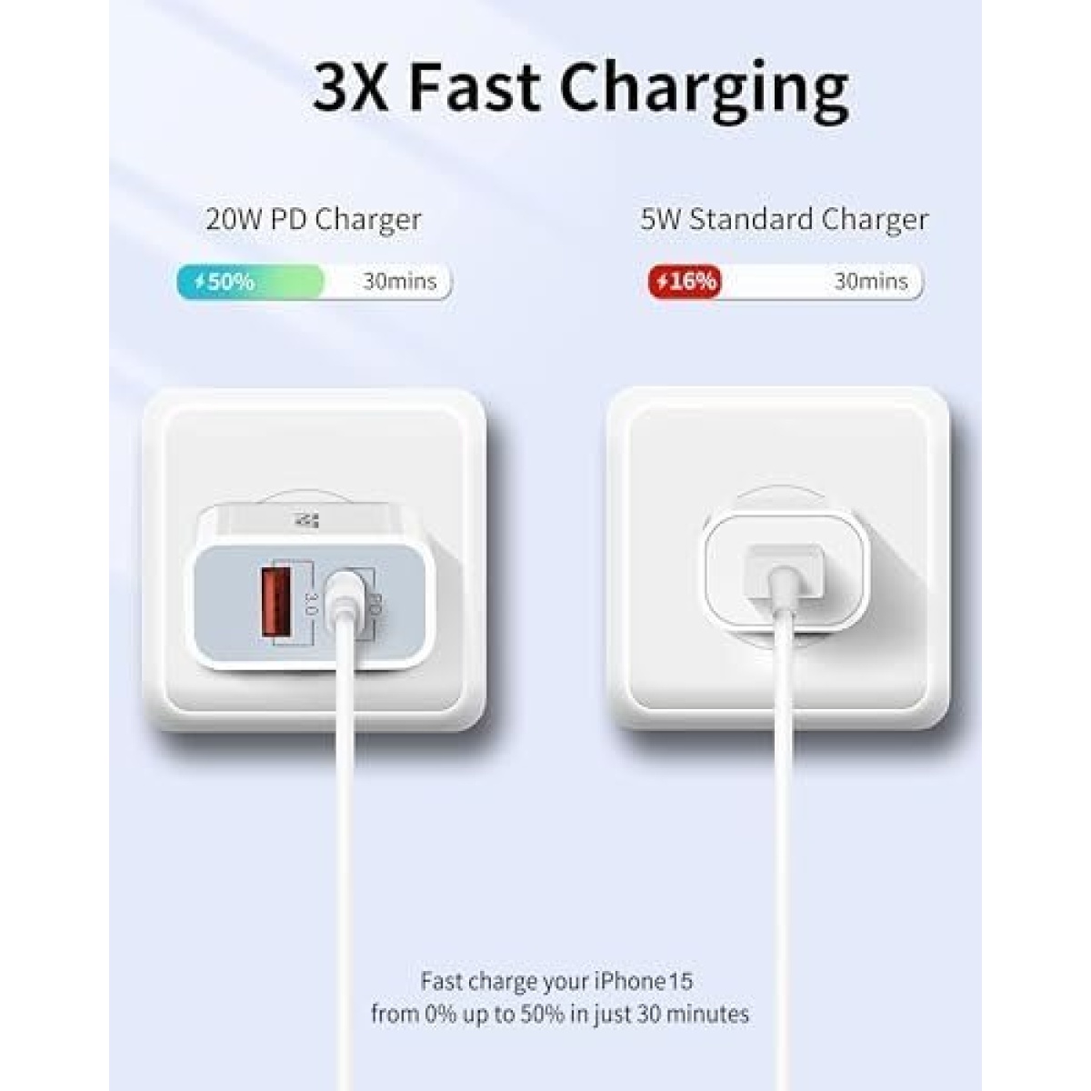 • With power delivery 3.0 fast charging technology, charge your iphone 15/14 up to 50% in just 30 minutes. 3X faster than 5W charger.