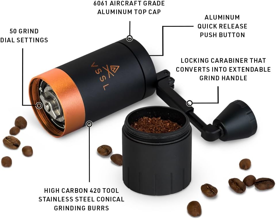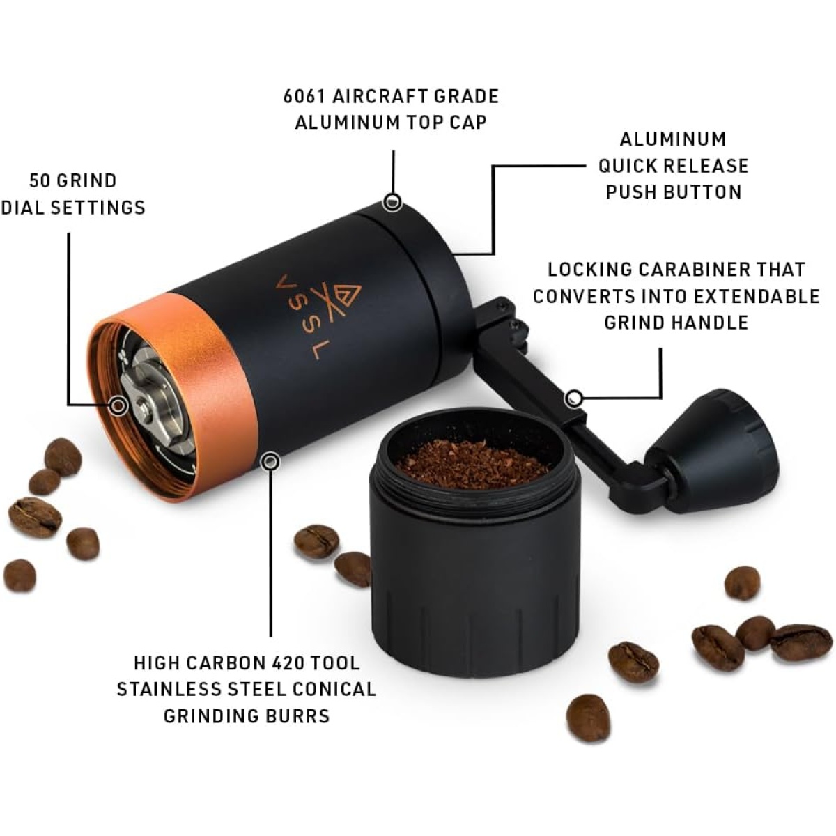 Beans to Brewing: This premium manual grinder features VSSL’s high carbon stainless steel burr & ergonomic handle so you can go from up to 25 gram grind capacity of beans, depending on the roast, to brewing coffee in under a minute