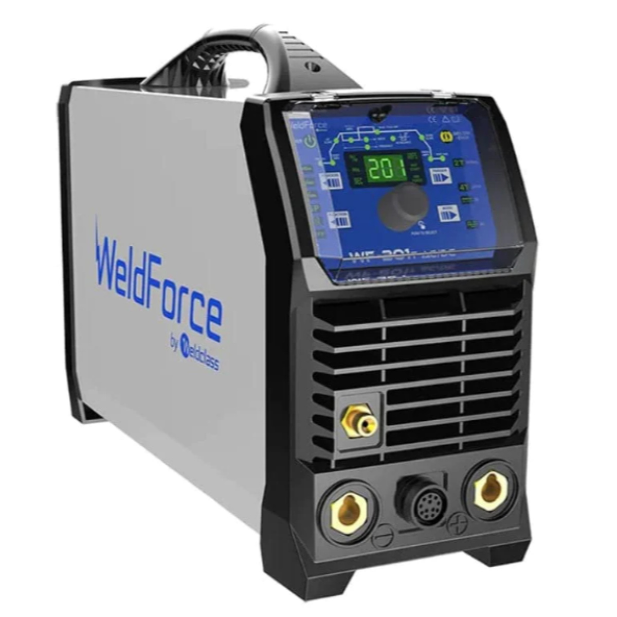 If you’re looking for the best TIG welding results on Aluminium, Steel, Stainless and more, the WF-201T is here to help! An Impressive 200A @ 30% output (AC TIG), very compact & portable, weighing just 8kg. Controls include; choice of HF or Lift-Arc ignition, pulse frequency and width adjustment, slop-up & slope-down, pre-gas & post-gas, AC Square-wave & balance controls, remote current adjustment on TIG torch handle, optional foot control… plus impressive Stick/MMA performance with capacity to run up to 4mm electrodes. Comes with: 4m #26 (200A) TIG torch, gas regulator, 4m earth & stick leads, large carry bag that easily fits the machine and leads, shoulder strap, cable strap to keep your leads tidy and a long 3m power input lead with 15A plug fitted.