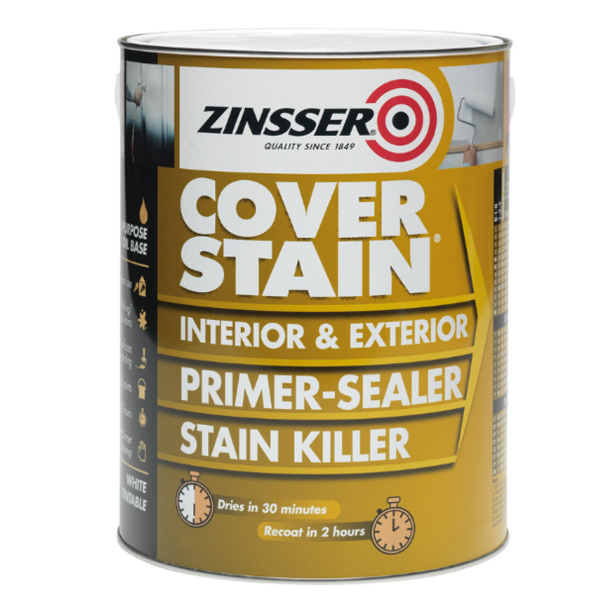 Cover Stain will be touch-dry in 35 minutes, and recoatable in two hours – this fast-acting primer will help you get the job done quicker, saving you time and money. A generous coverage of up to 9.8m² per litre ensures each tin goes a long way, and it can be used under any solvent-based or water-based topcoat.